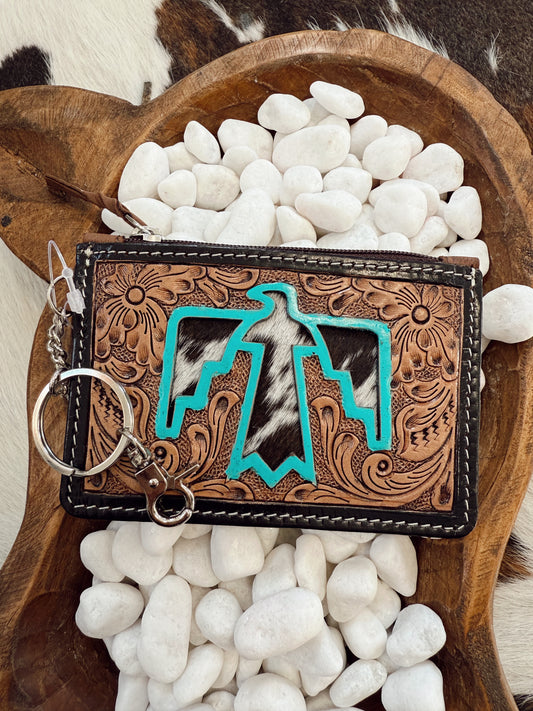 Turquoise Cowhide Cross Keychain / Bag Charm