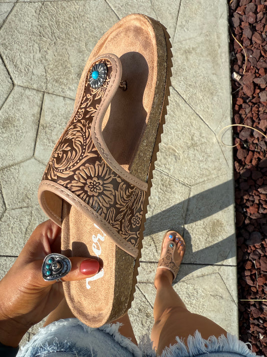 Footo Western Hand Tooled Sandals