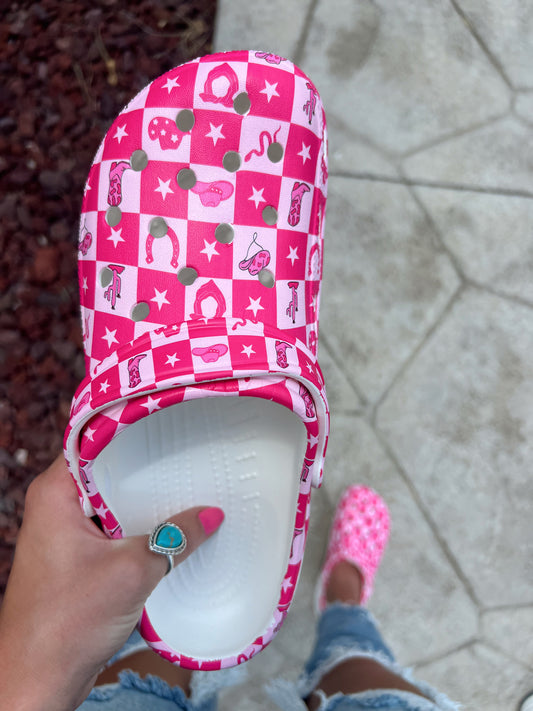 Checkered Pink Western Clogs **Read Description for Sizing**