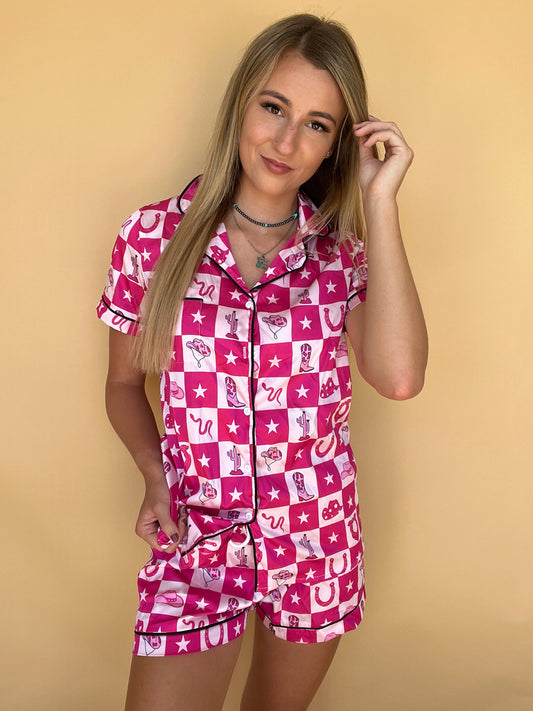 Yeehaw Checkered Short Sleeve Pajama Set (PREORDER - Ships in approx 2-3 weeks)Regular price $39.99 USDRegular priceUnit price per-