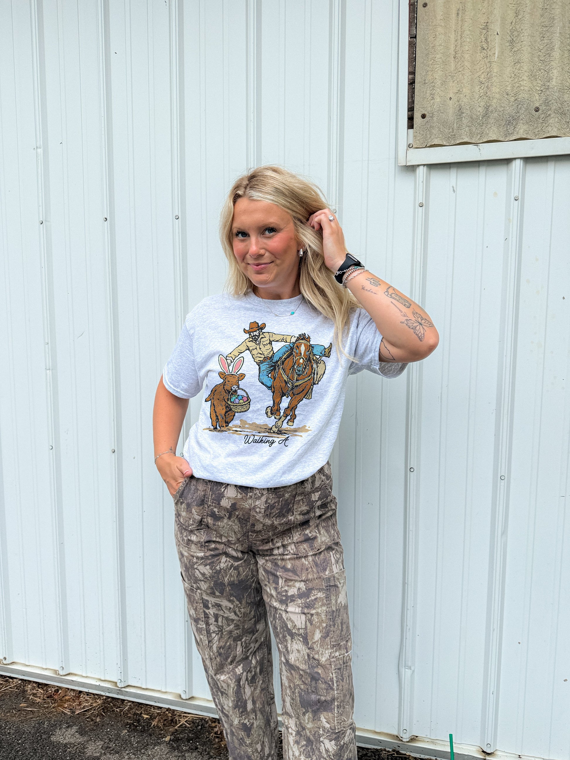 Bunny Doggin’ by Walking A provides a unisex fit on an ash, white, or sand tee or crew.
