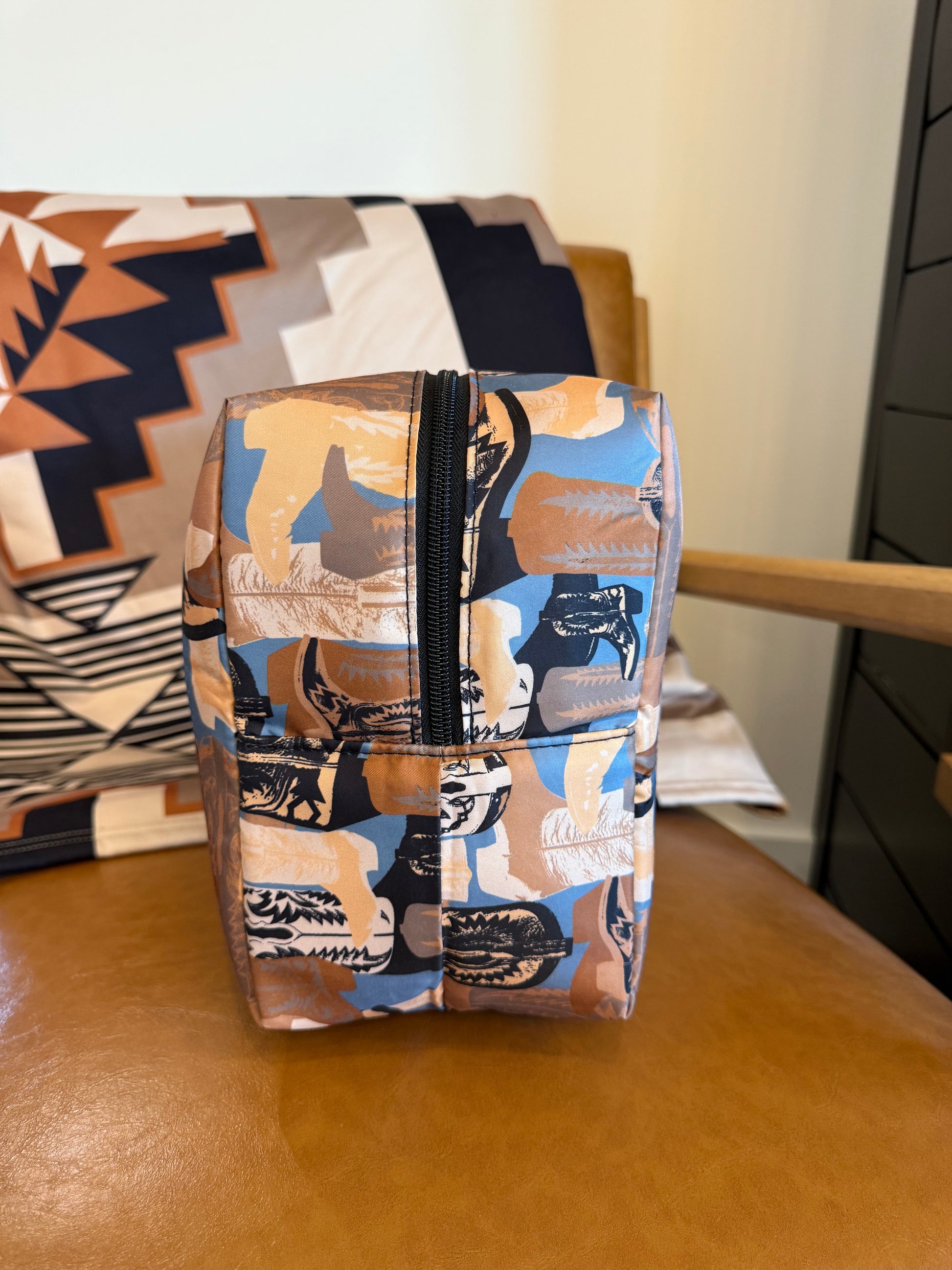 The perfect toiletry travel bag! It has a strap on the side, zipper closure and is the perfect size for your hair tools, shampoo/conditioner, and toiletries!